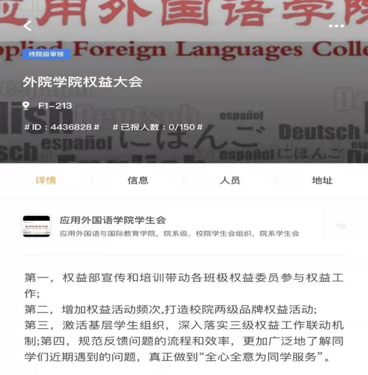 (学生通讯员魏文云) 为切实维护好同学们的正当权益,实现学校发展与学生成长相互促进,应用外国语与国际教育学院21级日语2班于11月11日在F1-213召开权益大会,贯彻落实学校党委、学院党总支关于切实维护学生正当权益的部署要求,明确维护同学权益各项职责与任务。各班权益委员、班长以及团支书参加会议。