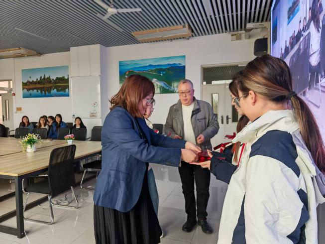 活动尾声,院领导为第四批援疆支教学生书写寄语并颁发纪念品——《习近平讲故事》,期待她们在未来的道路上续写华章。参会人员合影留念,定格这一难忘时刻。这不仅是一张照片,更是青春与奉献的见证。