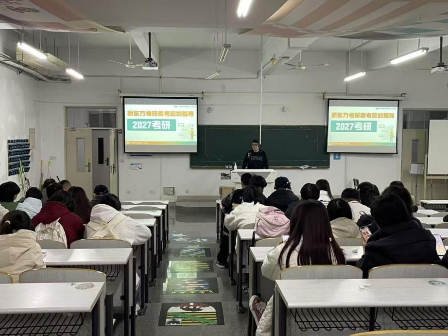 2025年11月4日,应用外国语与国际教育学院联合新东方共同举办“外语学子生涯规划启航”专题讲座。此次讲座专为大一大二学生量身定制,聚焦语言类专业学生的成长关键期,依托新东方在语言教育与国际职业发展领域的深厚积淀,为外语学子提供精准的生涯规划指导。
