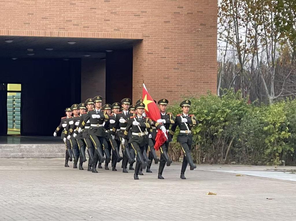 晨光微熹中,国旗护卫队的同学们踏着铿锵有力的正步迈向升旗台。他们身着笔挺制服,身姿如松,肃穆的神情与坚定的步伐交织,每一步都踏出青春的坚毅与时代的担当,瞬间让现场氛围变得庄严而神圣。当雄壮的《义勇军进行曲》奏响,鲜艳的五星红旗缓缓升空,在场每一位同学都自觉整理衣装、昂首挺胸,目光紧紧追随国旗,在激昂的旋律中感悟家国情怀,将爱国之志悄然镌刻于心。