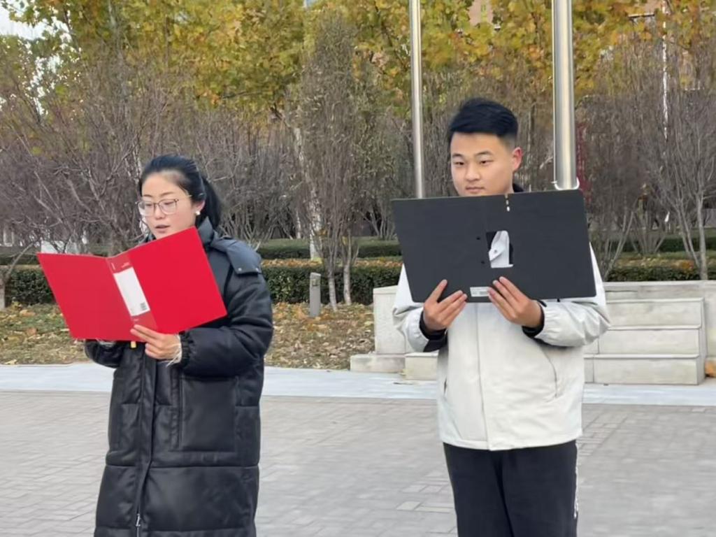 升旗仪式由25德语(本)1班的高宜轩同学主持。她身着整洁的服装,声音清晰洪亮,从开场介绍到环节过渡都把控得当,确保仪式有序进行。在场同学在她的引导下,全程保持肃静,专注参与,共同感受升旗仪式的庄严氛围。